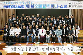 [보고] 9월 22일(월), ABMRC 유일한홀에서 열린 공공연대노련 제1회 의료정책 미니스쿨에 우리 노동조합도 함께 했다. 이날 교육에서는 이수진 더불어민주당 의원이 강사로 나서 현재 국회에서 논의 중인 돌봄·의료 정책을 소개하고 입법과정에서의 노동자의 역할도 설명했다. 이밖에도 한국노총 안은미 국장, 고려대 노동문제연구소 이주호 선임연구위원이 강사로 나서 하루교육을 알차게 채웠다.