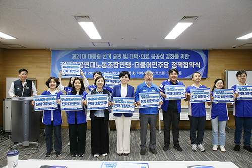 또 29일 열린 임시대의원대회를 마친 후 노동조합은 이재명 후보 지지선언을 통해 내란세력 척결·올바른 의료개혁·주4일제 실현을 요청했다.